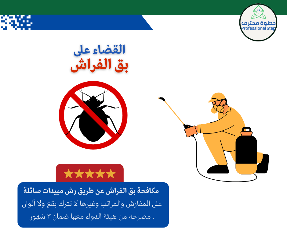 نضمن لك في 'خطوة محترف' بيئة خالية تماماً من الحشرات دون المساس بصحة أطفالك أو حيواناتك الأليفة. نستخدم في الرياض حصرياً مبيدات سعودية وطنية وامريكية مصرحة من هيئة الغذاء والدواء، برائحة وعديمة الرائحة وآمنة تماماً، لنقضي على الآفات من الجذور ونمنحك منزلاً صحياً وهادئاً تستحقه."